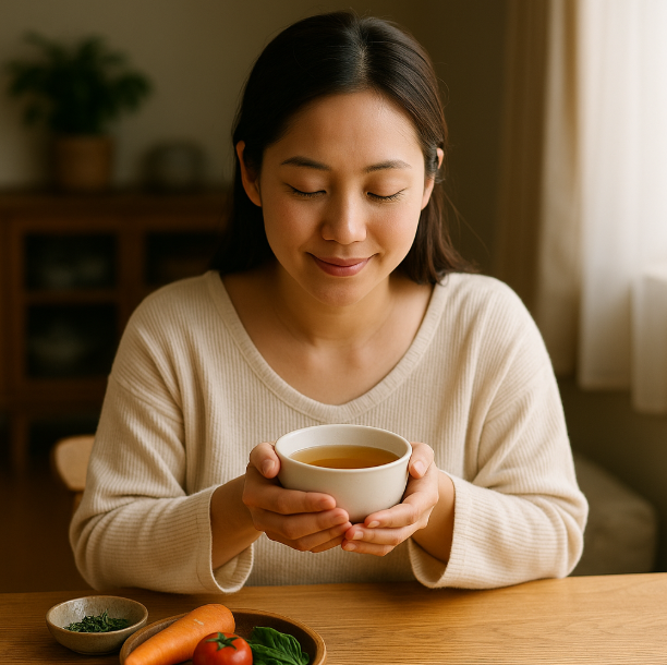 - 소금 최소화, 후추·허브로 풍미 보강. 무·시래기·버섯을 듬뿍 넣어 포만감↑, 나트륨 부담↓.