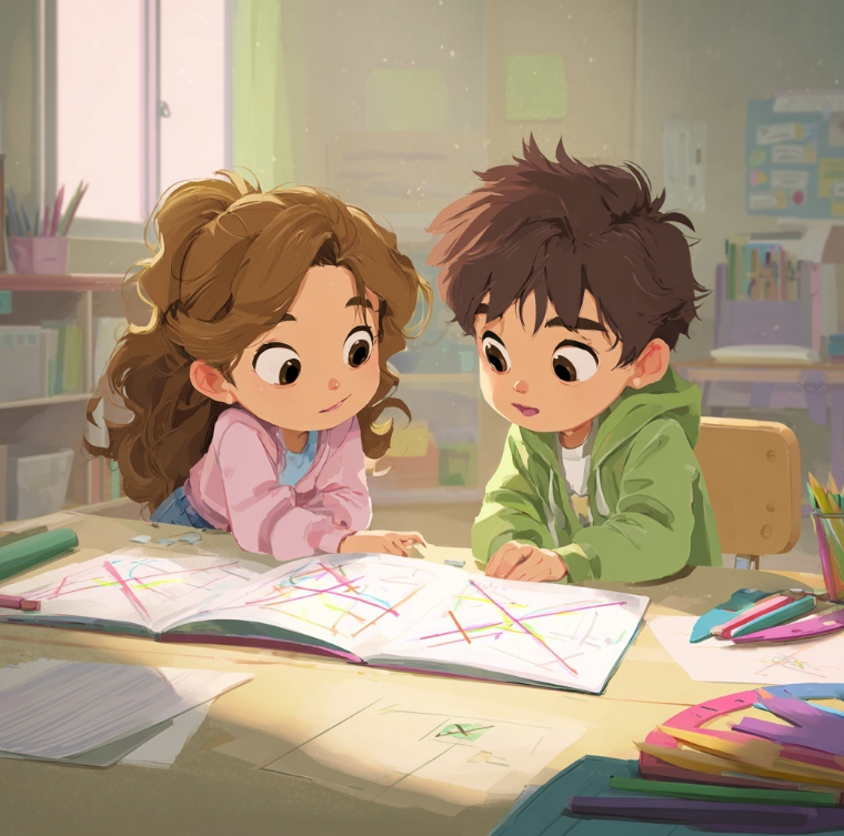 종이에 연필로 두 직선을 그어 볼게요. 두 선이 만나면 어떤 모양이 되나요?