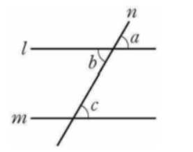 이제 위쪽 교차점에서 오른쪽 위 방향으로 생긴 각을 a라고 하고, 아래쪽 교차점에서 오른쪽 위 방향으로 생긴 각을 c라고 해 봅시다.
