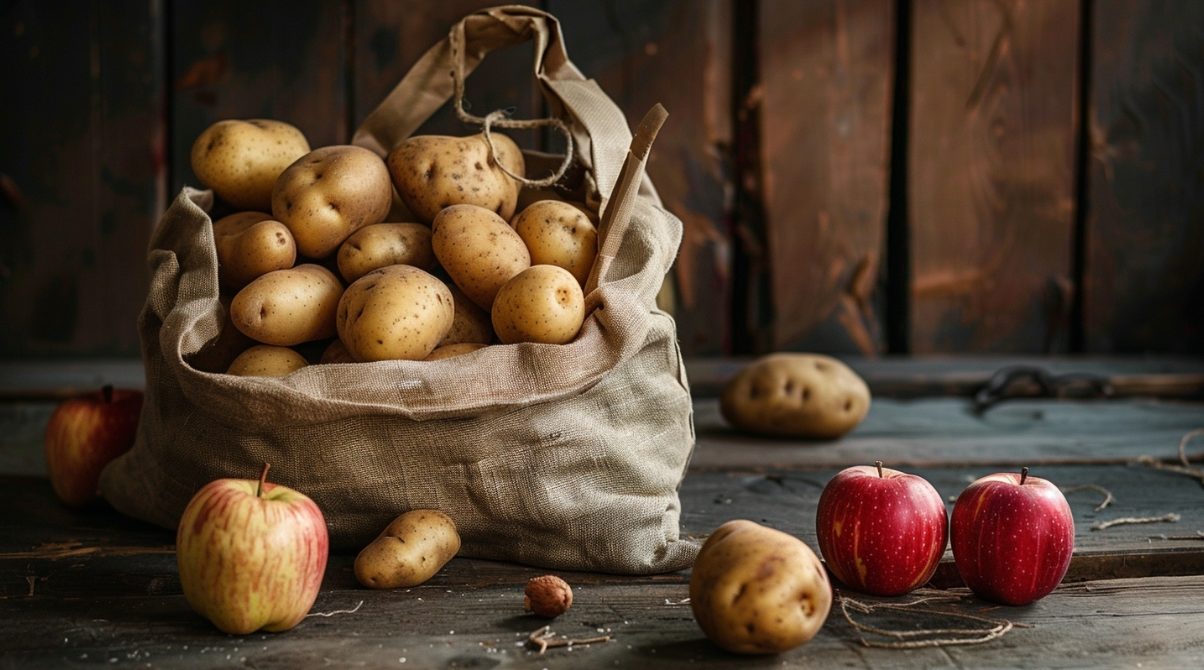 사과 1~2개를 같이 넣으면 사과에서 나오는 에틸렌가스가 감자의 발아를 억제.